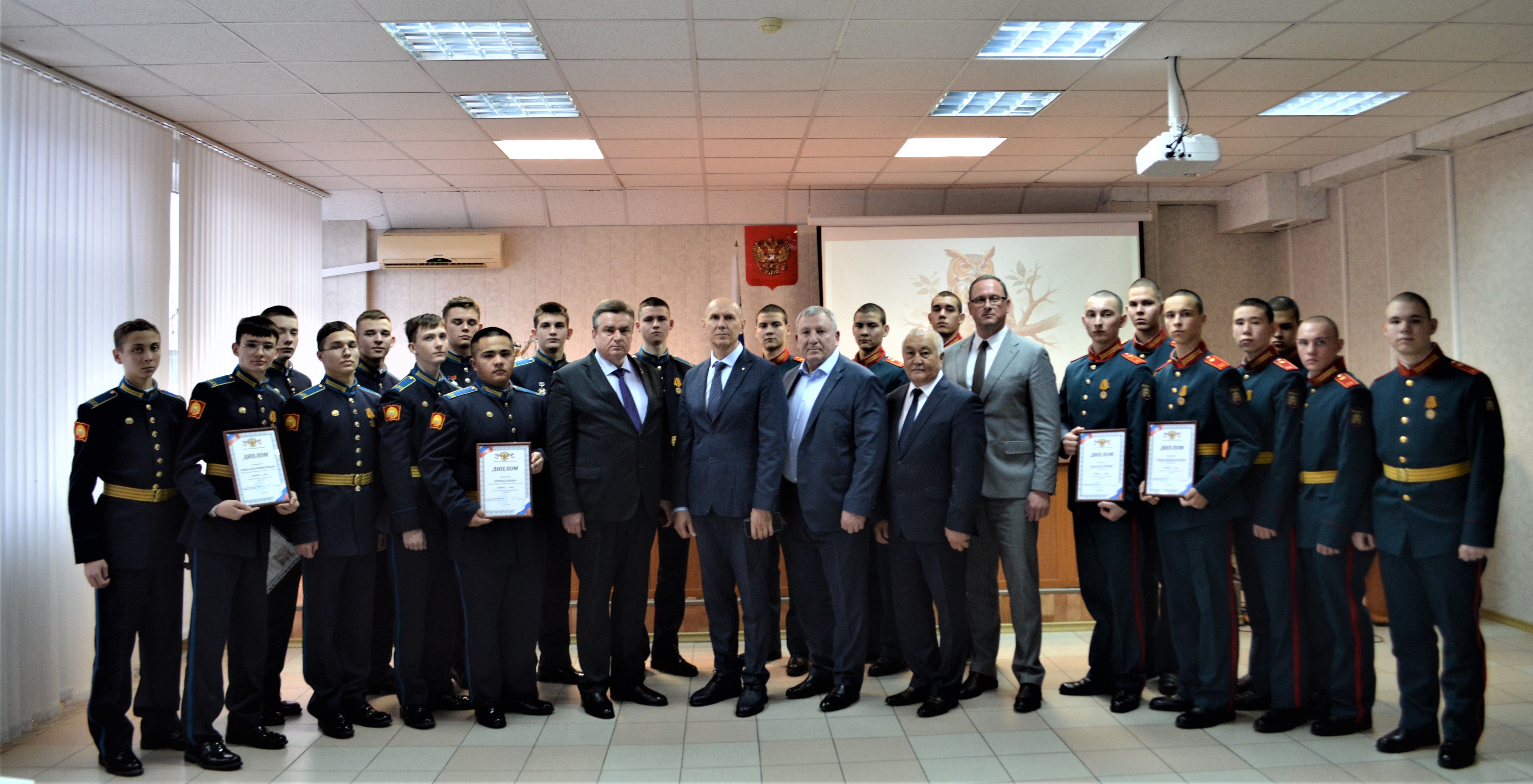![]() 27 ноября 2025 года начальник Управления Судебного департамента в Оренбургской области Ляшенко Сергей Николаевич принял участие в составе жюри интеллектуально-правовой игры «Знатоки», посвященной празднованию 80-летия победы в Великой Отечественной войне. Также в составе жюри присутствовали председатель Оренбургского областного суда Ушаков Владимир Михайлович, вице-губернатор – заместитель председателя Правительства – руководитель аппарата Губернатора и Правительства Оренбургской области Кулагин Дмитрий Владимирович, заместитель председателя совета судей Оренбургской области Гурьянов Алексей Павлович, председатель комитета по обеспечению деятельности мировых судей Оренбургской области Кужабаев Мурат Даньярович. В игре приняли участие 4 команды знатоков Оренбургского Президентского кадетского училища и Оренбургской кадетской школы-интерната имени И.И. Неплюева. Игра проводилась в 6 туров: «Разминка», «Следствие ведут», «Самый умный», «Факты», «Угадай мелодию» и «Домашнее задание». По результатам интеллектуально-правовой игры состоялось награждение участников. |